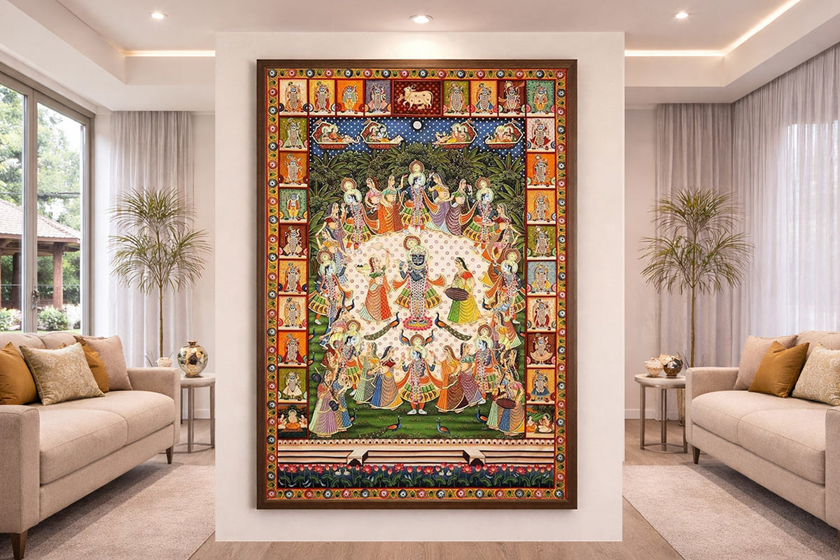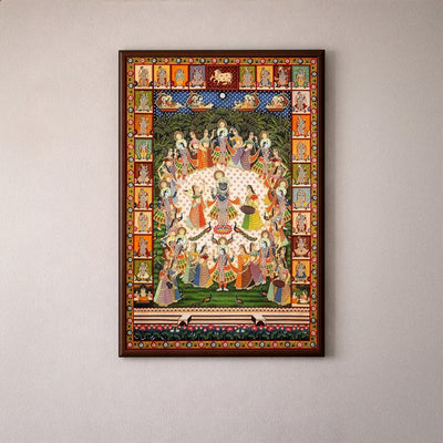 Original Handmade Krishna Raas Leela Pichwai Painting – Sacred Nathdwara Miniature Art